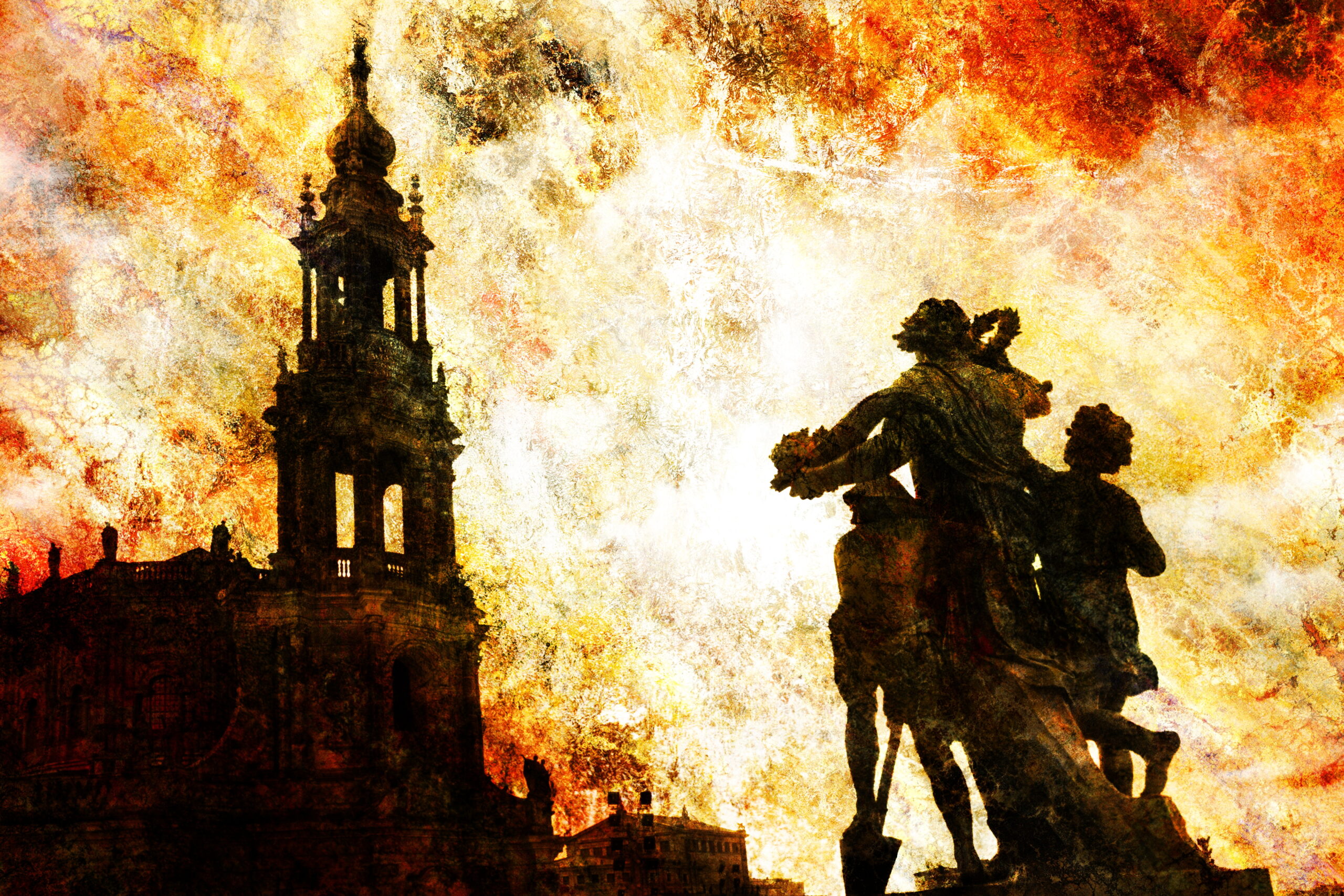 Die Bombenangriffe auf Dresden vom 13. bis 15. Februar 1945 durch britische und amerikanische Bomber zerstörten die Innenstadt fast vollständig und forderten bis zu 25.000 Todesopfer. Ein verheerender Feuersturm vernichtete historische Gebäude wie die Frauenkirche.